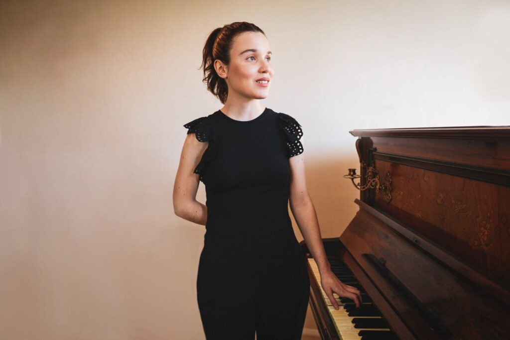 Con il suo pianoforte e la sua voce incantevole, Frida riesce a trasformare ogni esibizione in un incontro intenso e coinvolgente, in cui il pubblico viene trasportato in un universo fatto di emozioni, eleganza e bellezza sonora.